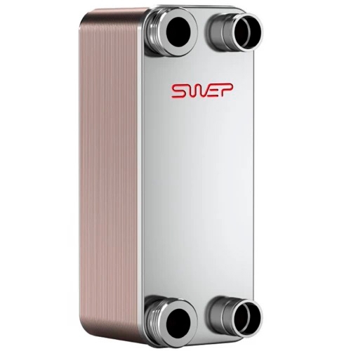 A brazed heat exchanger is a plate heat exchanger designed to transfer heat from the coolant to the heated medium. Heat transfer takes place between two corrugated plates, which are connected by soldering in a sealed body.